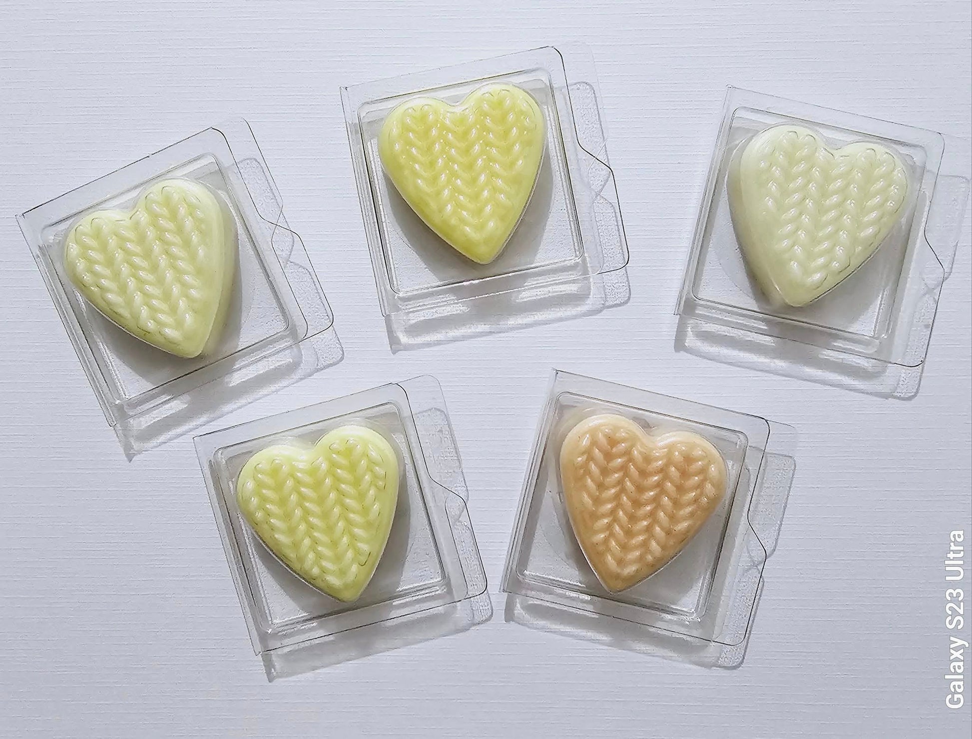 Please note, each melt colour may vary and each wax mold may vary. You may receive a heart shape, circle disc or square shaped mold and each melt could be a different colour but will be clearly labelled as to the fragrance.