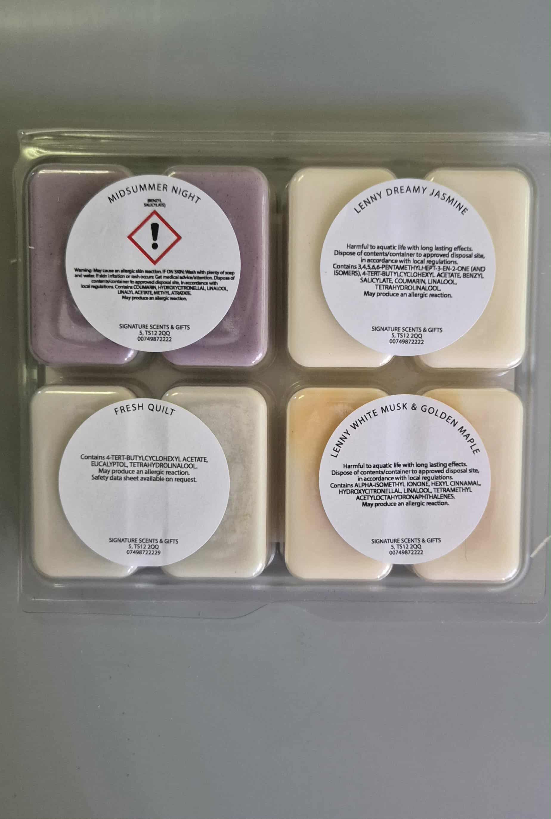 Here you will find our range of cleaning and laundry scented sample melts. These are approx 12g in size and can be burned for up to 10 hours for room filling scent.